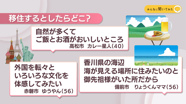 移住したい?【みんなに聞いてみた】 2023/5/22 18:15 みんなに聞いてみた ADVERTISEMENT ADVERTISEMENT 22日は、香川県さぬき市の移住体験ハウスをご紹介しましたが、Park KSBアプリでは皆さんが移住したいと思ったことはあるか聞いてみました。 写真ページをみる