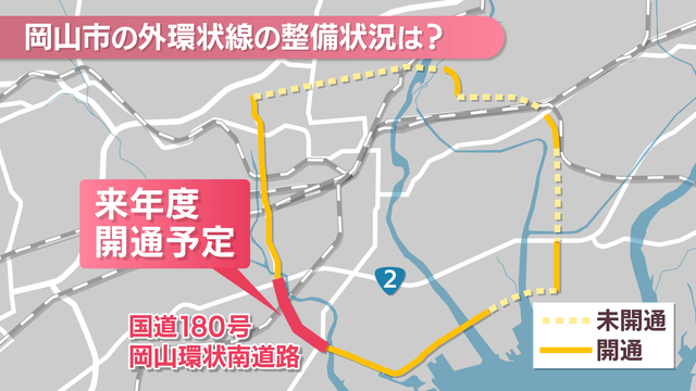 岡山市は「外環状線」全てが開通するには10年以上かかるとみています。