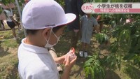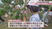 「でっかい。さらさら、毛がいっぱい」小学生が桃の収穫を体験 特産品への理解深める 岡山・赤磐市