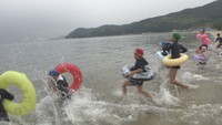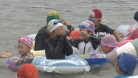 沙美海水浴場で海開き 一番乗りは地元の小学生「すごく楽しい」 8月23日まで開設 岡山・倉敷市