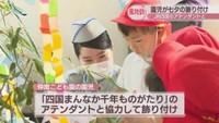 園児が駅で七夕の飾り付け JR四国の観光列車「四国まんなか千年ものがたり」のアテンダントと協力 香川・まんのう町