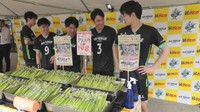 男子バレー・アスペルジュ香川の選手がチーム名の由来のアスパラガスをPR