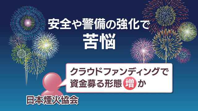 自治体も安全や警備の強化で頭を悩ませているのが分かります。日本煙火協会は、クラウドファンディングで資金を募る形態も増えるのではとみています。