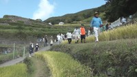 • 小豆島の「中山千枚田」で行われた稲刈り体験