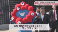 中国地方知事会に先立ち大阪・関西万博の公式キャラクター「ミャクミャク」がイベントをPR