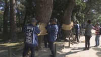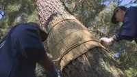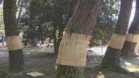 • 岡山後楽園で秋の風物詩「松のこも巻き」 薬を使わず害虫を駆除 Play