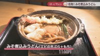 • エビの天ぷらともちをトッピングしたみそ煮込みうどん(1160円)