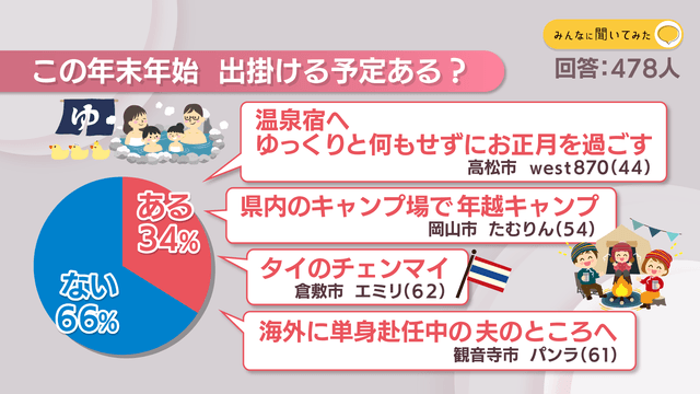 この年末年始 出掛ける予定ある?【みんなに聞いてみた】 2023/12/7 17:30 みんなに聞いてみた ADVERTISEMENT ADVERTISEMENT 7日は「年末年始のおでかけ」などについてお伝えしましたが、Park KSBアプリでは「この年末年始、出掛ける予定があるか」を聞いてみました。 写真ページをみる