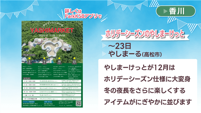 香川で2位となったのが、高松市のやしまーるで開かれている「ホリデーシーズンのやしまーけっと」です。