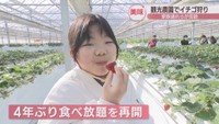 観光農園でイチゴ狩りがスタート 4年ぶりに食べ放題も再開 生育遅れ今「一番果」が 岡山・鏡野町