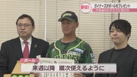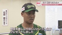 • 大谷翔平選手のグラブのプレゼントに合わせ 香川オリーブガイナーズが小学校にボール寄贈 Play
