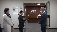 • 高松市議会事務局の担当者に要望書を渡す市民オンブズ香川の太田代表