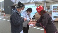 小豆島のイチゴ400個を観光客らに無料配布(エンジェルロード公園)