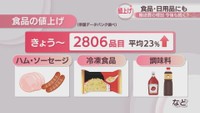 • 食品ではハムやソーセージなど2806品目が値上げに