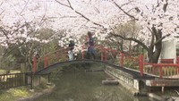 【今が見頃】赤い橋とピンクの桜のコラボが楽しめる 三豊市・朝日山森林公園