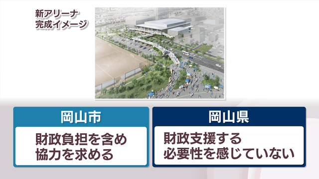岡山県と岡山市は都市公園事業の負担金以外でも折り合いがついていない問題があります。それが、市が整備を検討している「新アリーナ」です。