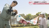 丸亀城のお堀で空を泳ぐ 地元の園児が作ったこいのぼり飾られる 香川