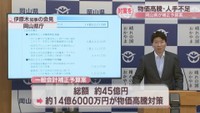 物価高騰・人手不足対策などに約45億円 岡山県の補正予算案