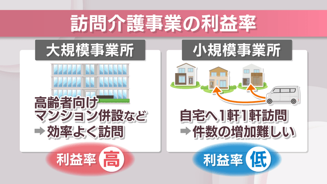 「1件でも(多く)訪問しないと収益にならない。ヘルパーさん自体も高齢化しているのでやっぱり60歳を過ぎた人が1日5件、6件、7件となると重労働に」