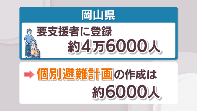 岡山県では2024年4月1日時点で約4万6000人が要支援者として登録されていますが、「個別避難計画」が作成されたのは約6000人にとどまっています。なぜ作成が進まないのか。そして、どう進めていけばいいのでしょうか。