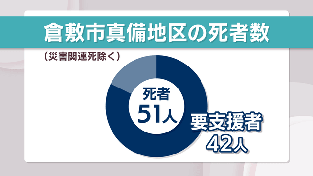 岡山県によりますと、倉敷市真備地区で亡くなったのは関連死を除いて51人。このうちの約8割にあたる42人が要支援者でした。