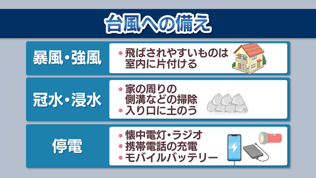 今のうちからハザードマップなどで自分のいる場所ではどんな災害が起こりやすいか確認しておきましょう。飛ばされやすいものは室内に片付けるなど、28日のうちに備えを進めてください。台風の進み方によっては状況が変わってきますので、最新の情報を確認してください。