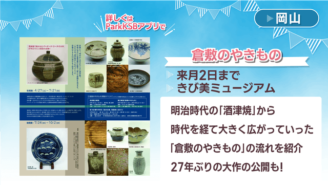 岡山県の1位は、倉敷市の「きび美ミュージアム」で開かれている焼き物の展覧会「倉敷のやきもの」です。