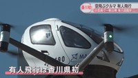 • 空飛ぶクルマの導入目指す香川県 県内初の「有人飛行」実証実験 検査員2人が乗り約6分飛行 Play