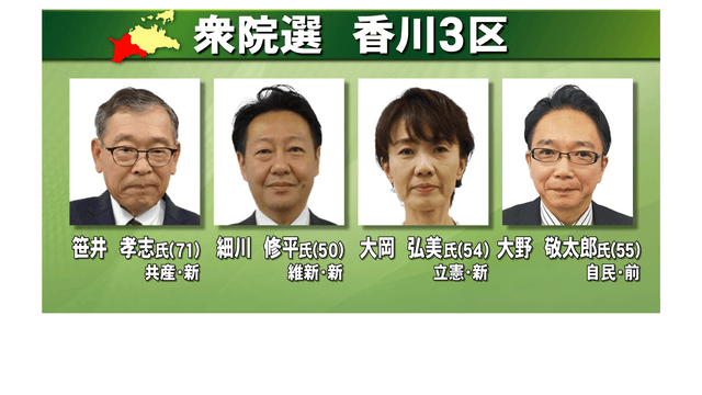 15日、衆院選が公示され、香川県では3つの選挙区に計12人が立候補しました。