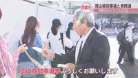 歩行者に投票呼び掛け JR岡山駅午前8時ごろ