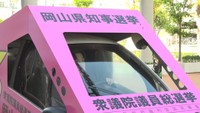 2つの選挙への投票を呼び掛ける岡山県の広報車 岡山県庁