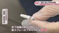 スプレー型のインフルエンザワクチンの接種を受ける子ども