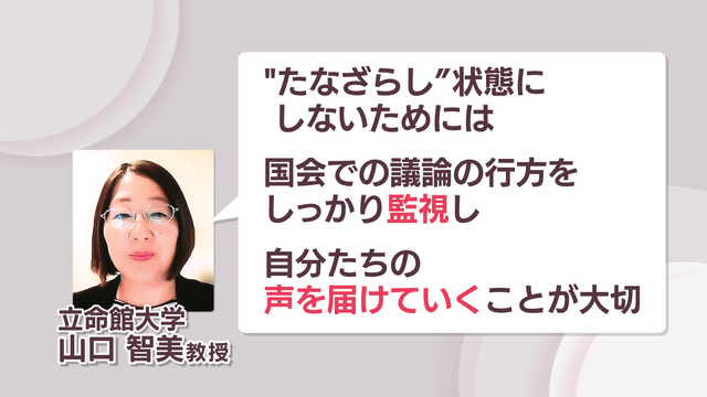 立命館大学の山口教授は、「また『たなざらし』の状態にしないためには、選挙が終わっても国会での議論の行方をしっかり監視して、自分たちの声を届けていくことが大切だ」と話しています。