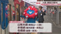 大阪・関西万博をPR 「ミャクミャク」などが描かれたラッピング列車をお披露目 岡山