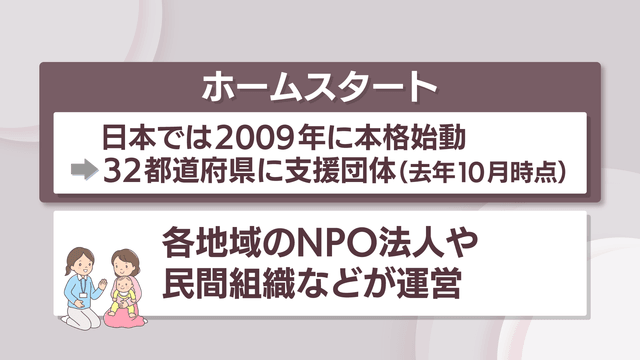 全国のホームスタートの取りまとめをしている団体によりますと、ホームスタートが日本で本格的に始まったのは2009年で、2023年10月時点で32都道府県に支援団体があります。