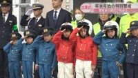 • 年末年始の特別警戒の出発式に警官姿の園児が参加