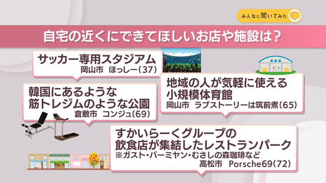 そして、このニュースに合わせてPark KSBアプリではみなさんが自宅の近くにできてほしいお店や施設はあるかを聞いてみました。