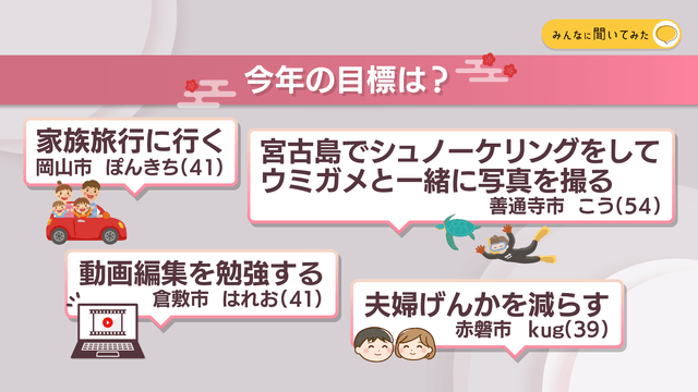 今年の目標は?【みんなに聞いてみた】 2025/1/6 17:30 みんなに聞いてみた ADVERTISEMENT ADVERTISEMENT 6日は、2025年最初の「Nes Park KSB」ということで、アプリで皆さんに新年の目標を聞いてみました。 写真ページをみる