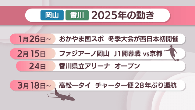 2025年がスタートしました。大きなイベントや新しくなるものなど岡山・香川のこの1年の主な「動き」について見ていきます。