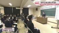 ボクシング世界王者・ユーリ阿久井政悟選手が中学校で講演 岡山・赤磐市
