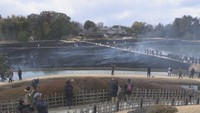 岡山後楽園で春を迎える恒例行事「芝焼き」 約1.8haの芝が黒いじゅうたんに