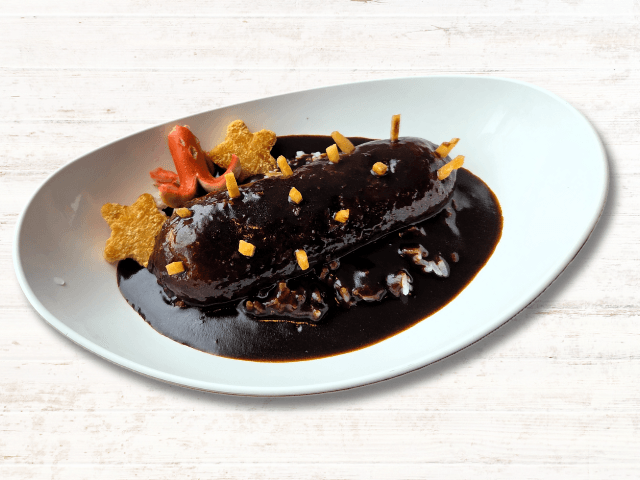 また、企画展に合わせて、ナマコをモチーフにしたカレーライスを期間限定で販売しています。「ベーコンポテトドック」に黒いカレーをかけてナマコに見立てています。こちらの販売も7月31日までです。