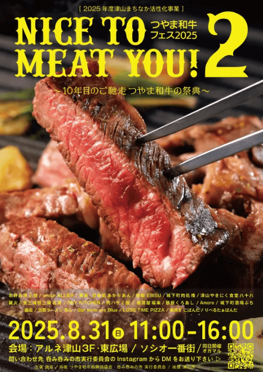 「つやま和牛」が2016年の初出荷から10周年を迎えるのを記念し、31日に「NICE TO MEAT YOU!2」を開催します。持続可能な農業の実現をめざす地域商社 曲辰や、つやま和牛振興協議会などが開くものです。