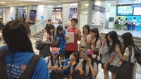 新スタジアム建設の署名協力を呼び掛けるファジアーノ岡山の選手ら 岡山・北区駅元町 3日