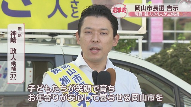 任期満了に伴う岡山市長選挙が、21日、告示され、現職と新人合わせて4人の争いとなりました。