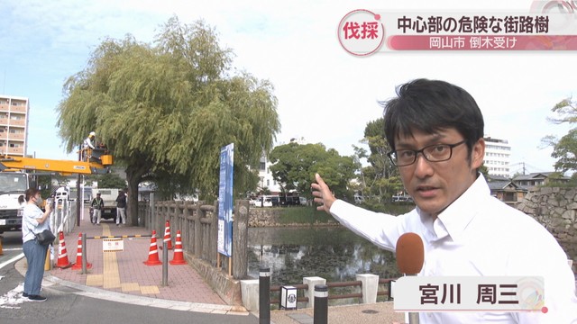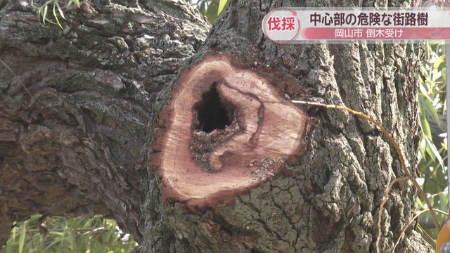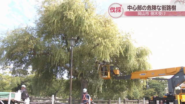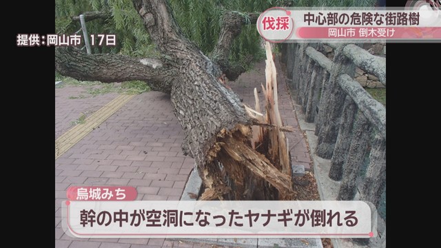 9月17日、岡山市中心部で高さ約10mの街路樹が倒れました。周辺の街路樹も倒れる危険があるとして24日、市が伐採しました。