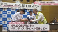 高校生が防犯帽子をデザイン 刑法犯減少へ 200個をボランティアパトロール団体などに贈呈 岡山市