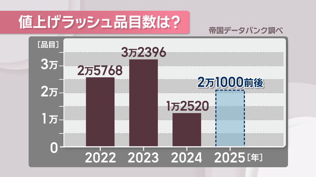 10月の値上げは3000品目を超えました。2025年4月以来、半年ぶりということですが、実は2025年、通年を通してみると年間の値上げ品目は2022年に並ぶ可能性があるそうです。
