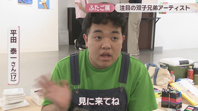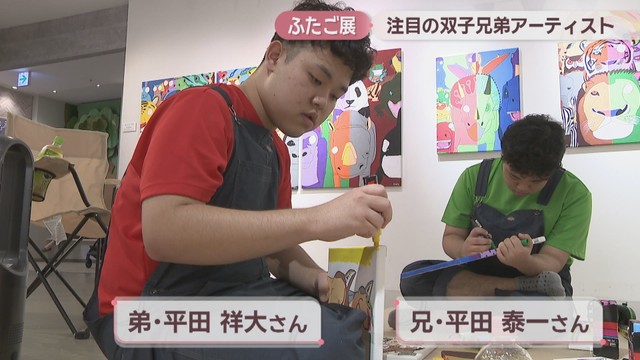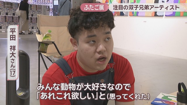 自閉スペクトラム症で特別支援学校に通う17歳の双子、平田泰一さんと祥大さん。2人の作品約60点が高松市の丸亀町グリーンで展示・販売されています。