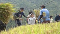 • 小豆島の中山千枚田で小学生が稲刈りに挑戦 香川大学農学部の学生が指導 Play